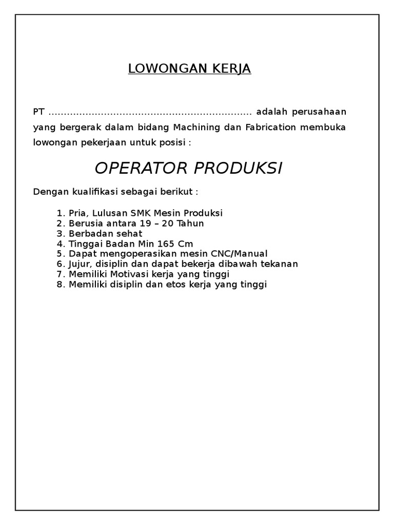 Iklan Lowongan Pekerjaan Teknik Mesin