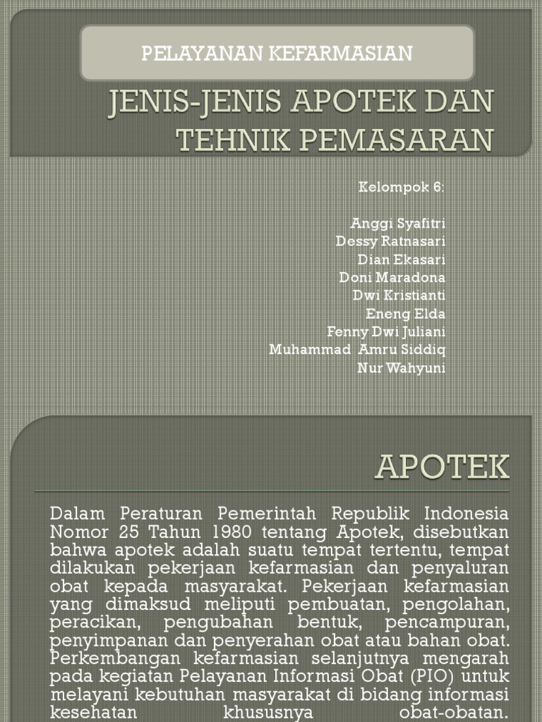 Jenis Jenis Apotek Dan Tehnik Pemasaran