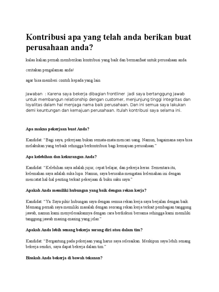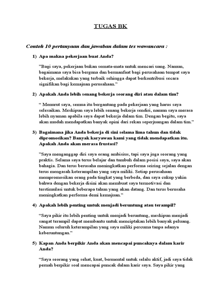 Tugas Bk Contoh 10 Pertanyaan Dan Jawaban Dalam Tes Wawancara