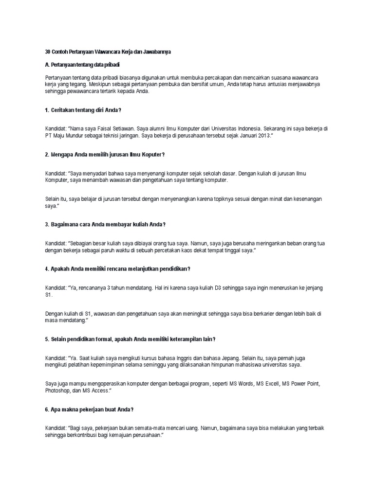 30 Pertanyaan Dan Jawaban Wawancara Kerja